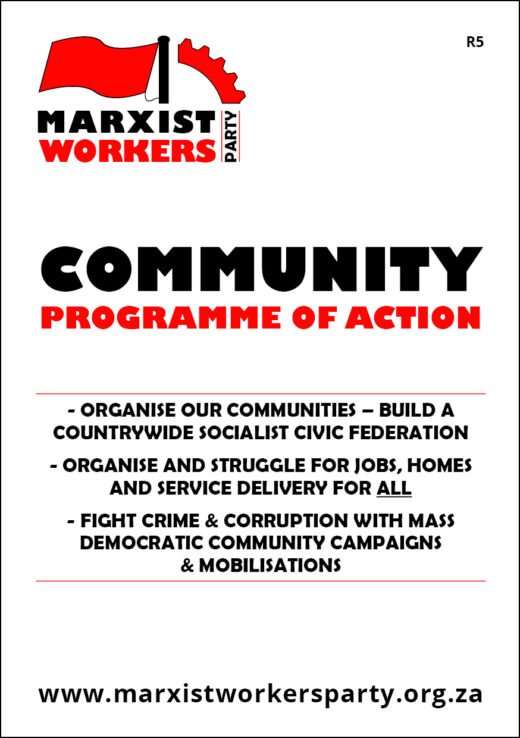 In this booklet we outline our analysis of the causes of the crises of poverty, unemployment, service delivery and crime that working class and poor communities face and a programme of action to address them. We present this booklet to community organisations and activists as a basis for engagements, discussion and debate on the way forward. We do not claim to have exhausted every issue. We offer our analysis and programme simply as a foundation upon which we hope to build together.