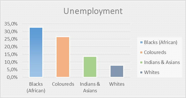 At the SA Human Rights Commission 2nd Annual Conference on Racism, it was reported that socio-economic status had a direct impact on whether a person was able to access their constitutional rights. See Figs. 2 for Stats SA povertylevels by racial groups and Fig 3 for 2023 Quarterly Labour Survey Unemployment levels.