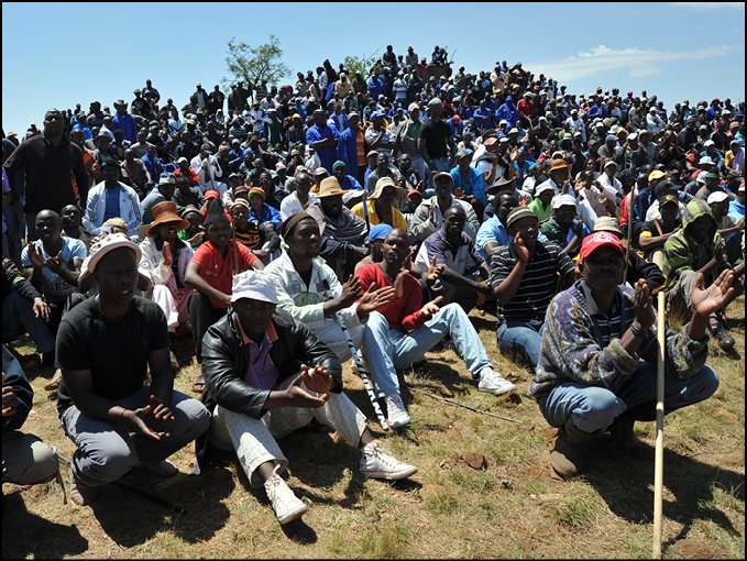 The strike was triggered by the bosses’ decision to grant wage increases to selected groups of workers to prevent them, rumour has it, from defecting to other companies offering higher rates of pay in a sector with no centralised bargaining or uniform remuneration. These increases breached a two-year agreement signed with the NUM and due to end in 2013. Seeing this as an attempt to create divisions, and with the two-year agreement effectively set aside by management with the apparent acquiescence of the NUM, the workers, acting independently, put forward a single pay demand to unite the workforce against the bosses. The NUM’s impotence in the face of these developments had infuriated the workers, and reopened the wounds of the NUM’s betrayal of the Lonmin workers last year. A committee was formed independently of the NUM.